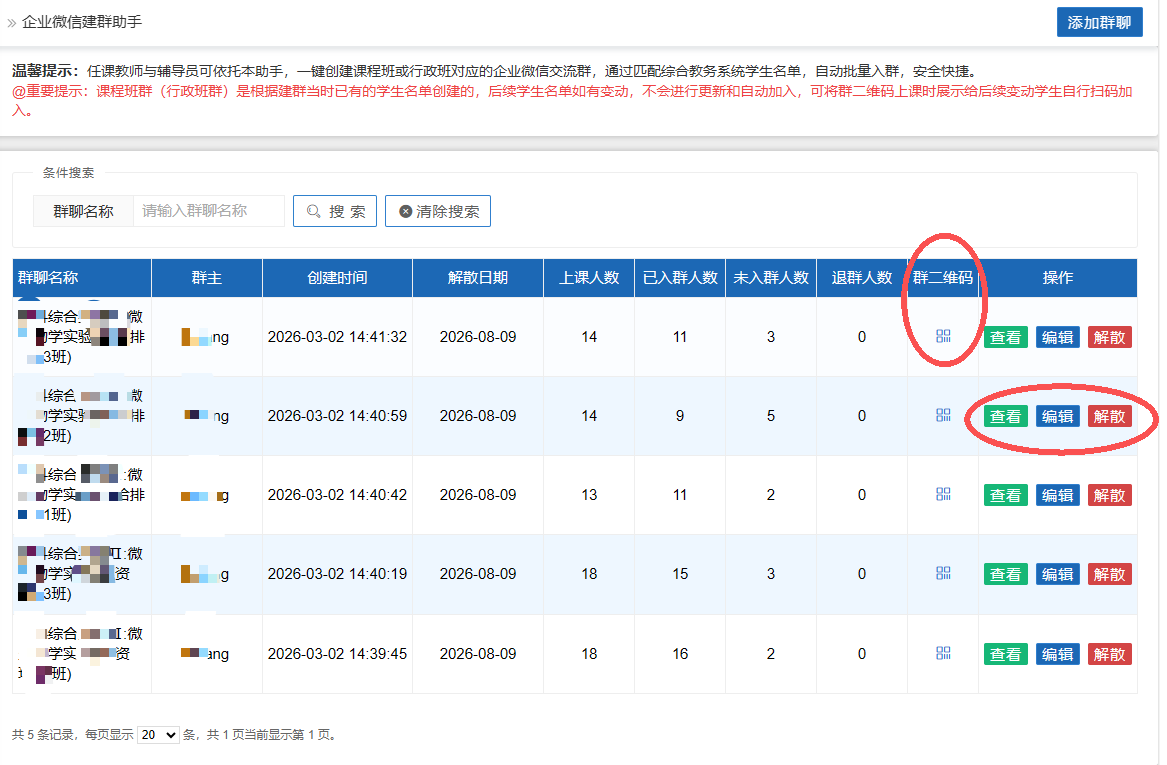@重要提示:课程班群(行政班群)是根据建群当时已有的学生名单创建的,后续学生名单如有变动,不会进行更新和自动加入,可将群二维码上课时展示给后续变动学生自行扫码加入。